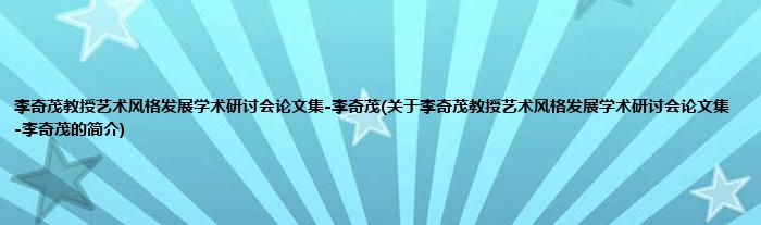 1、 《李奇茂教授艺术风格发展学术研讨会论文集-李奇茂》是一本图书 。