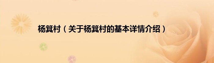 本文关于杨箕村的基本详情介绍就讲解完毕,希望对大家有所帮助。