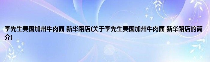 本文关于李先生美国加州牛肉面 新华路店的简介就讲解完毕,希望对大家有所帮助。