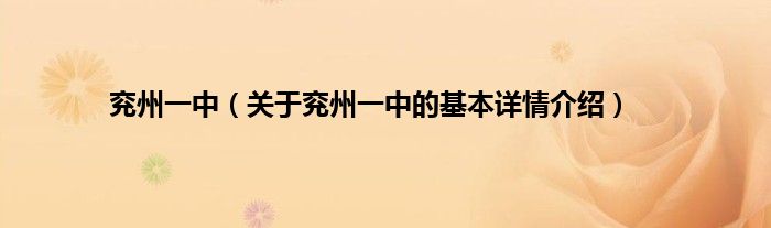 大家好我是小蝌蚪,兖州一中,关于兖州一中的基本详情介绍很多人还不知道,那么现在让我们一起来看看吧!