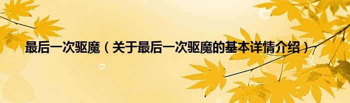 本文关于最后一次驱魔的基本详情介绍就讲解完毕,希望对大家有所帮助。