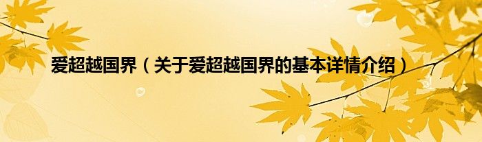 本文关于爱超越国界的基本详情介绍就讲解完毕,希望对大家有所帮助。
