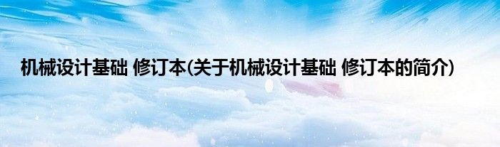 大家好,机械设计基础 修订本,关于机械设计基础 修订本的简介很多人还不知道,现在让我们一起来看看吧!