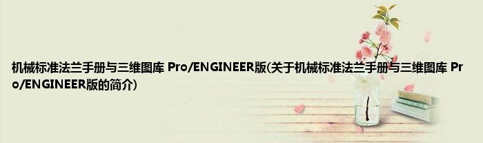 本文关于机械标准法兰手册与三维图库 Pro/ENGINEER版的简介就讲解完毕,希望对大家有所帮助。