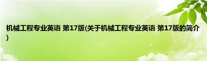本文关于机械工程专业英语 第17版的简介就讲解完毕,希望对大家有所帮助。