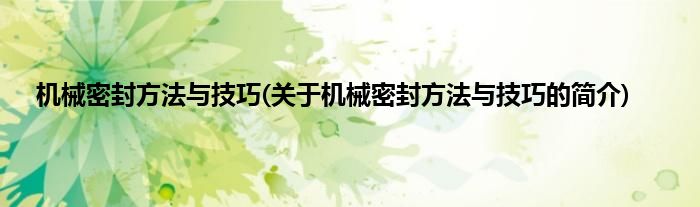 大家好,机械密封方法与技巧,关于机械密封方法与技巧的简介很多人还不知道,现在让我们一起来看看吧!