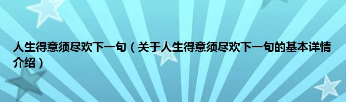 本文关于人生得意须尽欢下一句的基本详情介绍就讲解完毕,希望对大家有所帮助。