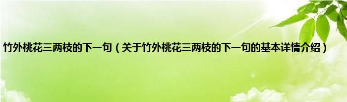本文关于竹外桃花三两枝的下一句的基本详情介绍就讲解完毕,希望对大家有所帮助。