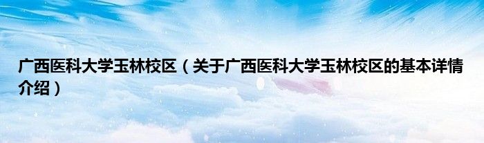 本文关于广西医科大学玉林校区的基本详情介绍就讲解完毕,希望对大家有所帮助。