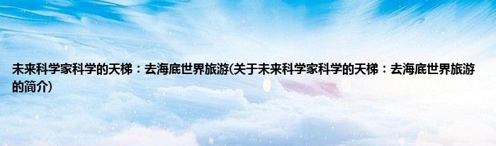 本文关于未来科学家科学的天梯:去海底世界旅游的简介就讲解完毕,希望对大家有所帮助。