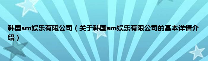 本文关于韩国sm娱乐有限公司的基本详情介绍就讲解完毕,希望对大家有所帮助。