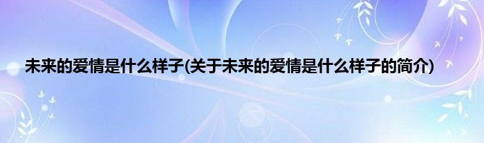 本文关于未来的爱情是什么样子的简介就讲解完毕,希望对大家有所帮助。