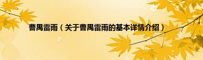本文关于曹禺雷雨的基本详情介绍就讲解完毕,希望对大家有所帮助。
