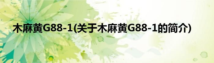 本文关于木麻黄G88-1的简介就讲解完毕,希望对大家有所帮助。