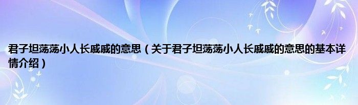 本文关于君子坦荡荡小人长戚戚的意思的基本详情介绍就讲解完毕,希望对大家有所帮助。