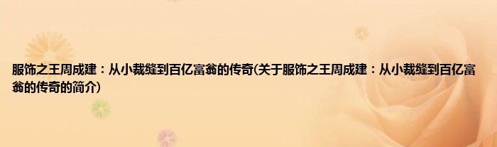 本文关于服饰之王周成建:从小裁缝到百亿富翁的传奇的简介就讲解完毕,希望对大家有所帮助。