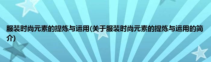 本文关于服装时尚元素的提炼与运用的简介就讲解完毕,希望对大家有所帮助。