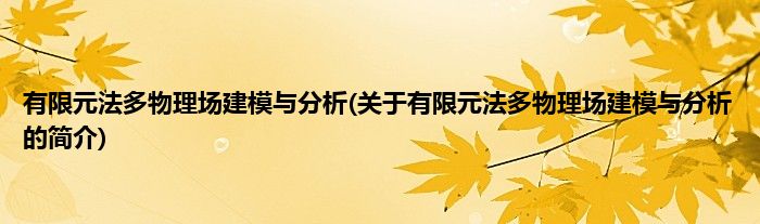 本文关于有限元法多物理场建模与分析的简介就讲解完毕,希望对大家有所帮助。