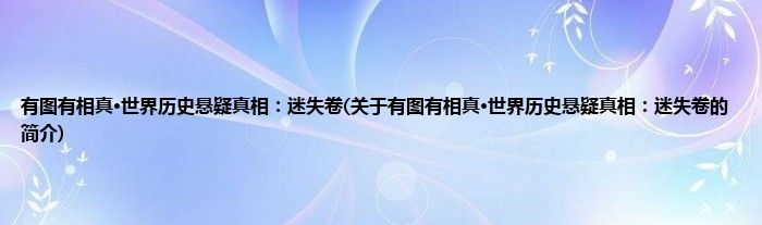 本文关于有图有相真·世界历史悬疑真相:迷失卷的简介就讲解完毕,希望对大家有所帮助。