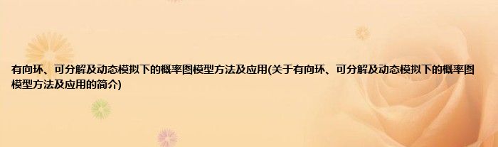 本文关于有向环、可分解及动态模拟下的概率图模型方法及应用的简介就讲解完毕,希望对大家有所帮助。