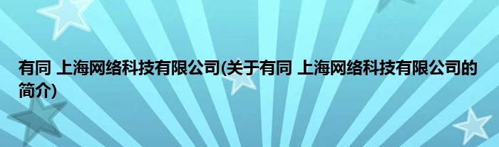 本文关于有同 上海网络科技有限公司的简介就讲解完毕,希望对大家有所帮助。