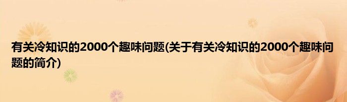 本文关于有关冷知识的2000个趣味问题的简介就讲解完毕,希望对大家有所帮助。