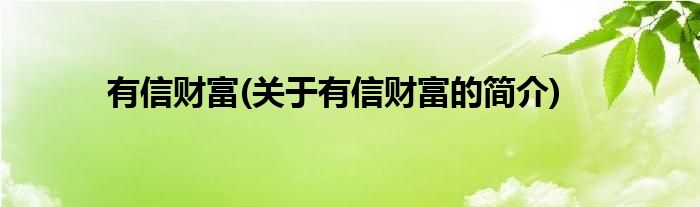本文关于有信财富的简介就讲解完毕,希望对大家有所帮助。