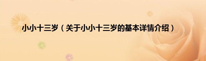 本文关于小小十三岁的基本详情介绍就讲解完毕,希望对大家有所帮助。