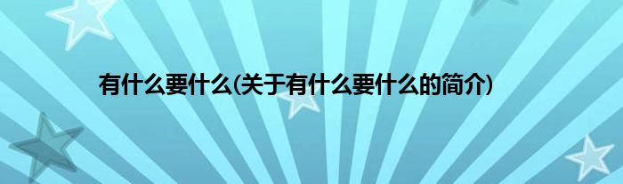 大家好,有什么要什么,关于有什么要什么的简介很多人还不知道,现在让我们一起来看看吧!