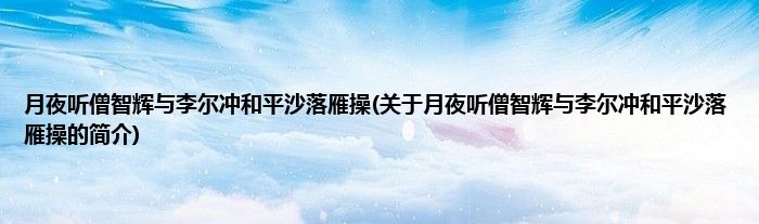 本文关于月夜听僧智辉与李尔冲和平沙落雁操的简介就讲解完毕,希望对大家有所帮助。