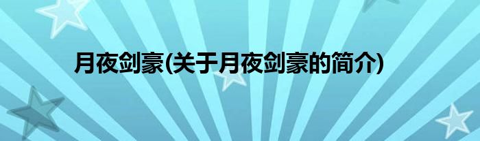 本文关于月夜剑豪的简介就讲解完毕,希望对大家有所帮助。