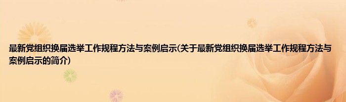 最新党组织换届选举工作规程方法与案例启示(关于最新党组织换届选举工作规程方法与案例启示的简介)