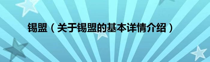 大家好我是小蝌蚪,锡盟,关于锡盟的基本详情介绍很多人还不知道,那么现在让我们一起来看看吧!