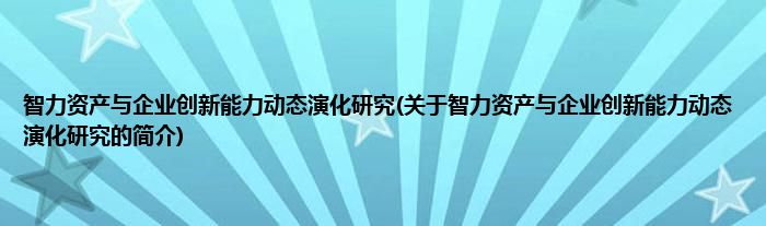 本文关于智力资产与企业创新能力动态演化研究的简介就讲解完毕,希望对大家有所帮助。