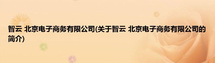本文关于智云 北京电子商务有限公司的简介就讲解完毕,希望对大家有所帮助。