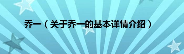 本文关于乔一的基本详情介绍就讲解完毕,希望对大家有所帮助。