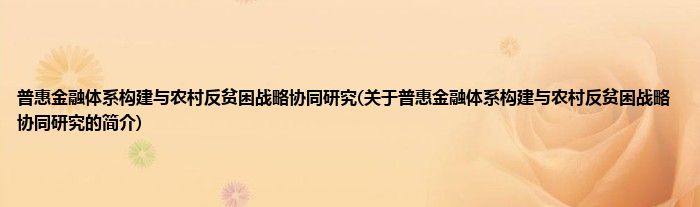 本文关于普惠金融体系构建与农村反贫困战略协同研究的简介就讲解完毕,希望对大家有所帮助。