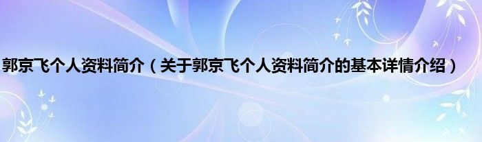 本文关于郭京飞个人资料简介的基本详情介绍就讲解完毕,希望对大家有所帮助。