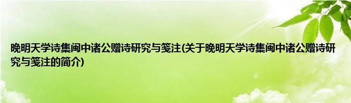 本文关于晚明天学诗集闽中诸公赠诗研究与笺注的简介就讲解完毕,希望对大家有所帮助。