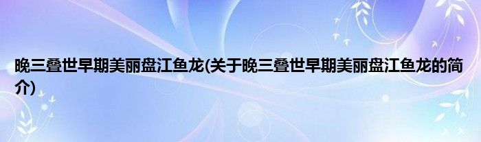 大家好,晚三叠世早期美丽盘江鱼龙,关于晚三叠世早期美丽盘江鱼龙的简介很多人还不知道,现在让我们一起来看看吧!