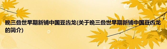 1、 晚三叠世早期新铺中国豆齿龙为晚三叠世早期文物。