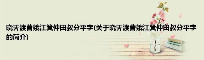 本文关于晓霁渡曹娥江箕仲田叔分平字的简介就讲解完毕,希望对大家有所帮助。