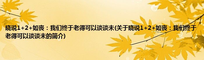 大家好,晓说1+2+如丧:我们终于老得可以谈谈未,关于晓说1+2+如丧:我们终于老得可以谈谈未的简介很多人还不知道,现在让我们一起来看看吧!