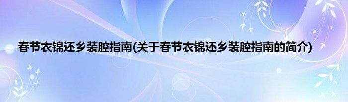 本文关于春节衣锦还乡装腔指南的简介就讲解完毕,希望对大家有所帮助。