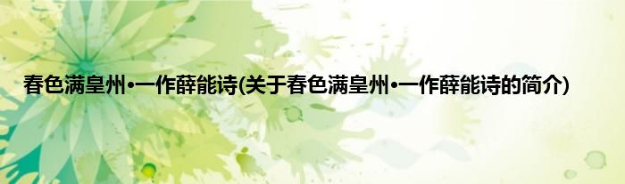 本文关于春色满皇州·一作薛能诗的简介就讲解完毕,希望对大家有所帮助。