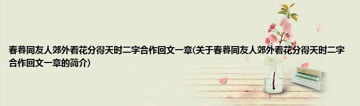 本文关于春暮同友人郊外看花分得天时二字合作回文一章的简介就讲解完毕,希望对大家有所帮助。