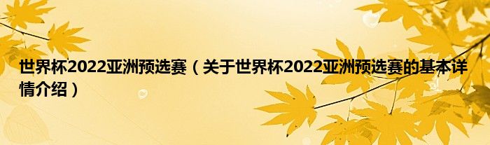 本文关于世界杯2022亚洲预选赛的基本详情介绍就讲解完毕,希望对大家有所帮助。
