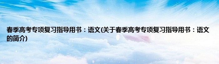 本文关于春季高考专项复习指导用书:语文的简介就讲解完毕,希望对大家有所帮助。