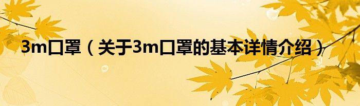 本文关于3m口罩的基本详情介绍就讲解完毕,希望对大家有所帮助。
