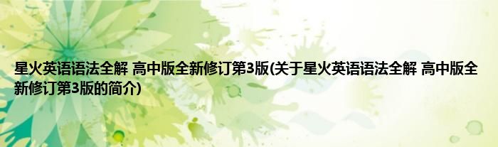 本文关于星火英语语法全解 高中版全新修订第3版的简介就讲解完毕,希望对大家有所帮助。